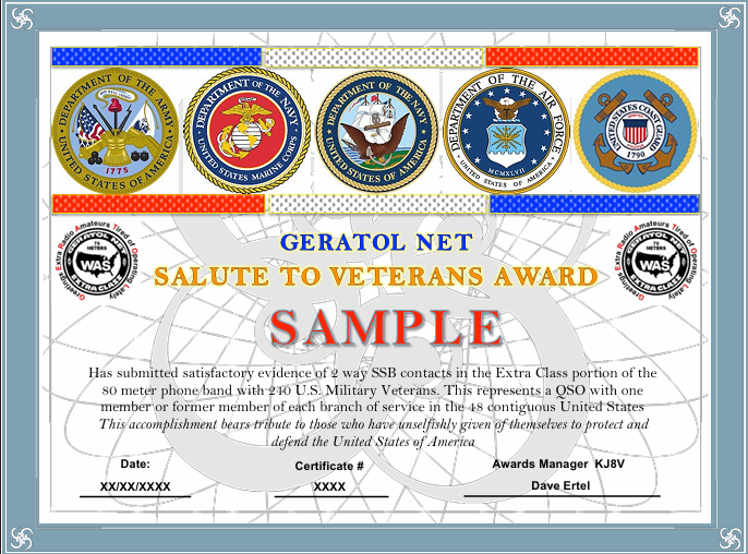 For log and application form, go to the GERATOL Website, click on AWARDS on the menu bar, then click on OTHER AWARDS AND CERTIFICATES, scroll down to Veterans Salute Award and the log form is located on the attached link.